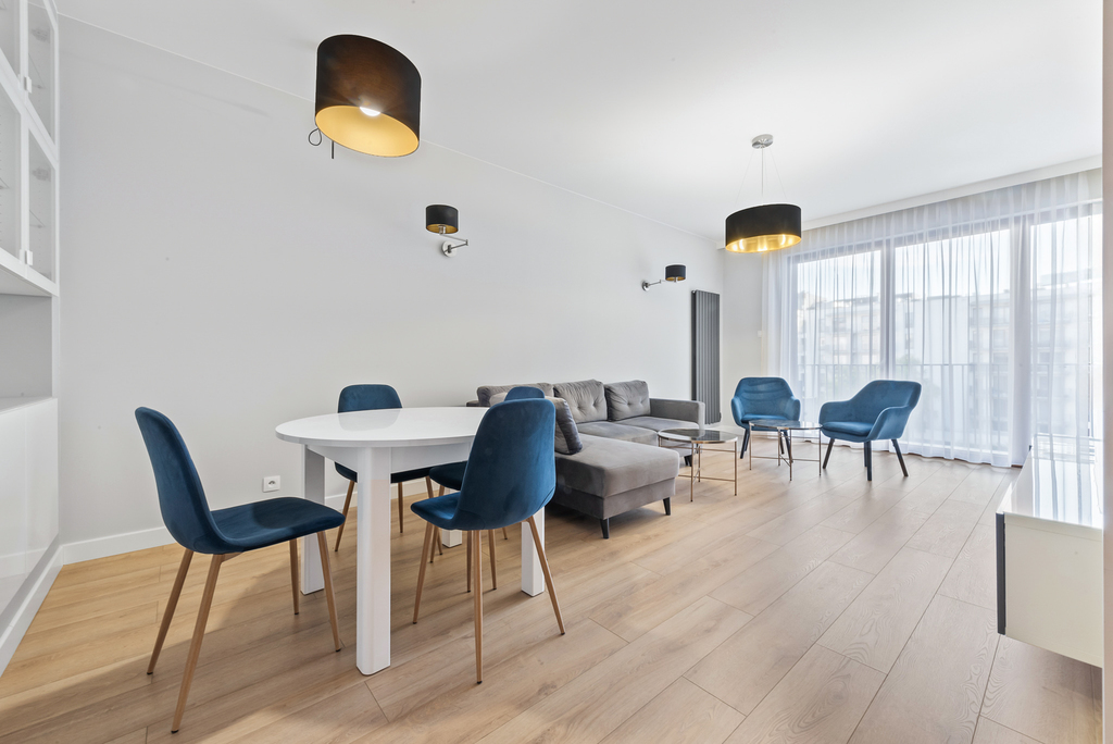 Standard wykończenia: Mieszkanie zostało wykończone w wysokim standardzie, w kuchni sprzęt firmy BOSH: płyta indukcyjna, zmywarka, piekarnik, mikrofala, w łazience ceramika dobrej jakości. Mieszkanie jest obecnie częściowo umeblowane - może zostać domeblowane według preferencji najemcy.