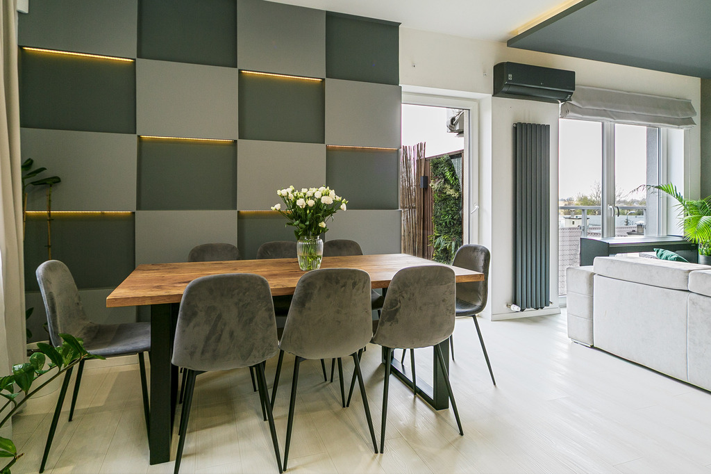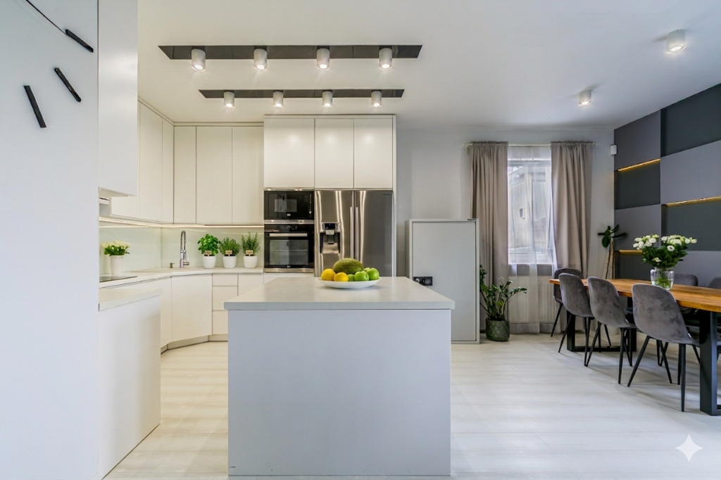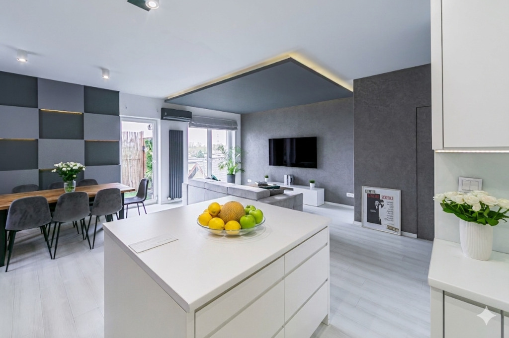 - przestronny pokój dzienny z kuchnią i jadalnią