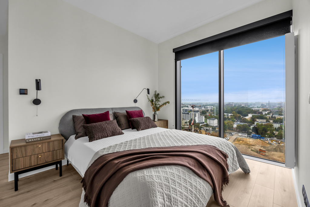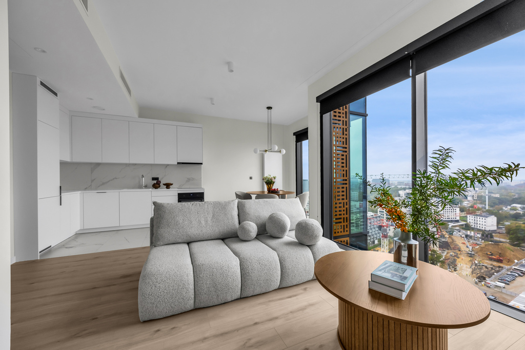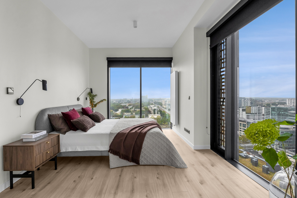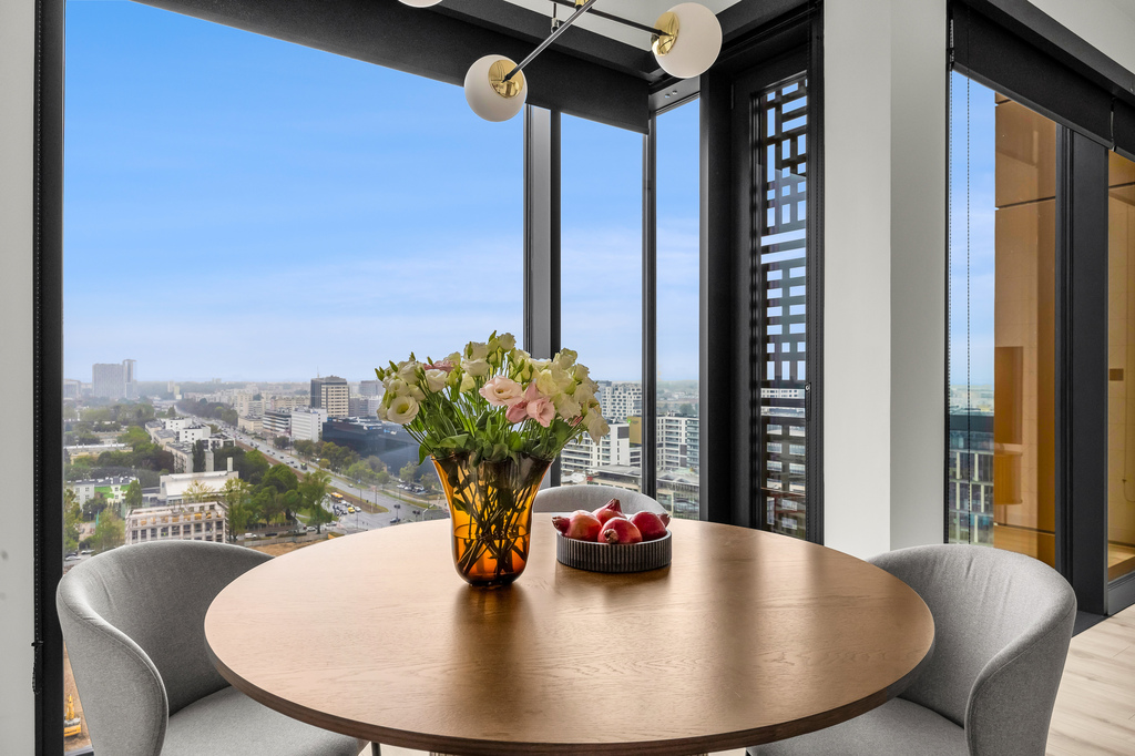 Modern apartment with a view from the 20th floor, 80 m2, 3 rooms, Towarowa Towers, Wola.