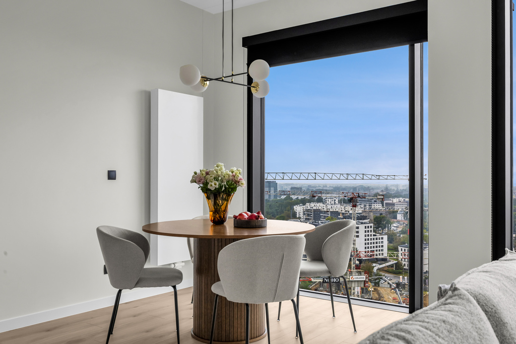 Nowoczesny apartament z widokiem z 20 piętra, 80 m2, 3 pokoje, Towarowa Towers, Wola.