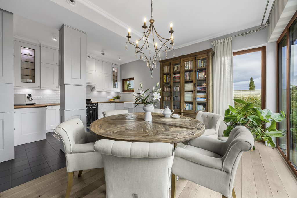 - jadalnia z wyjściem na taras i do ogrodu