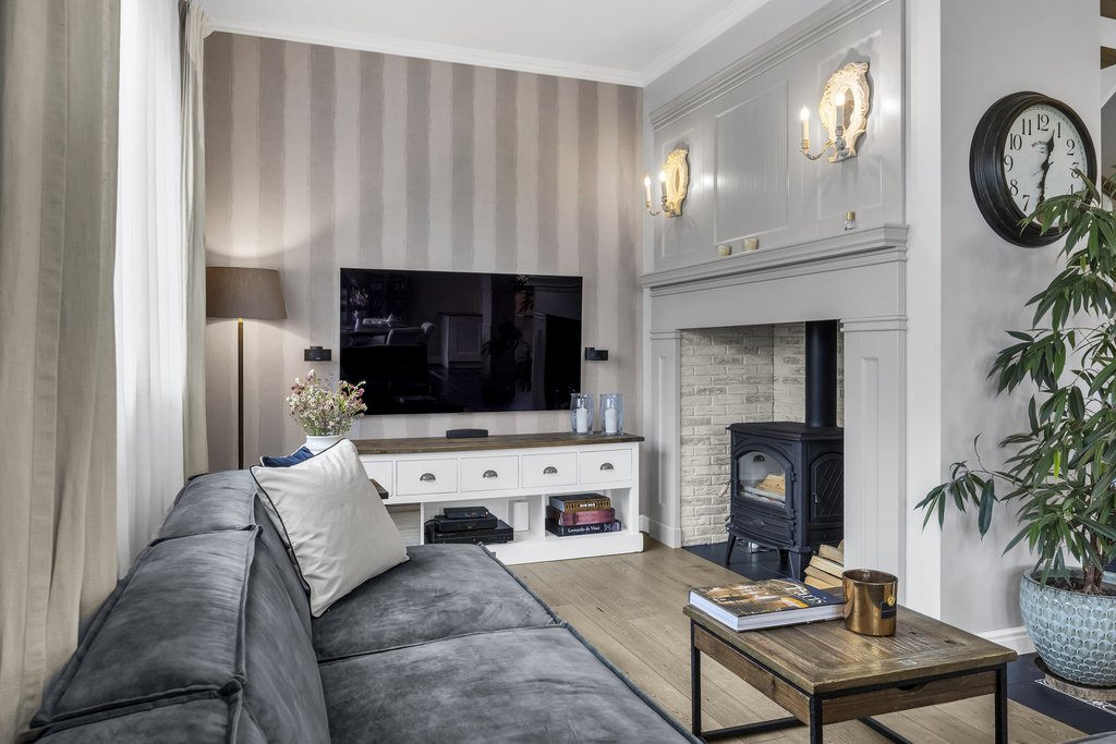 - salon z kominkiem