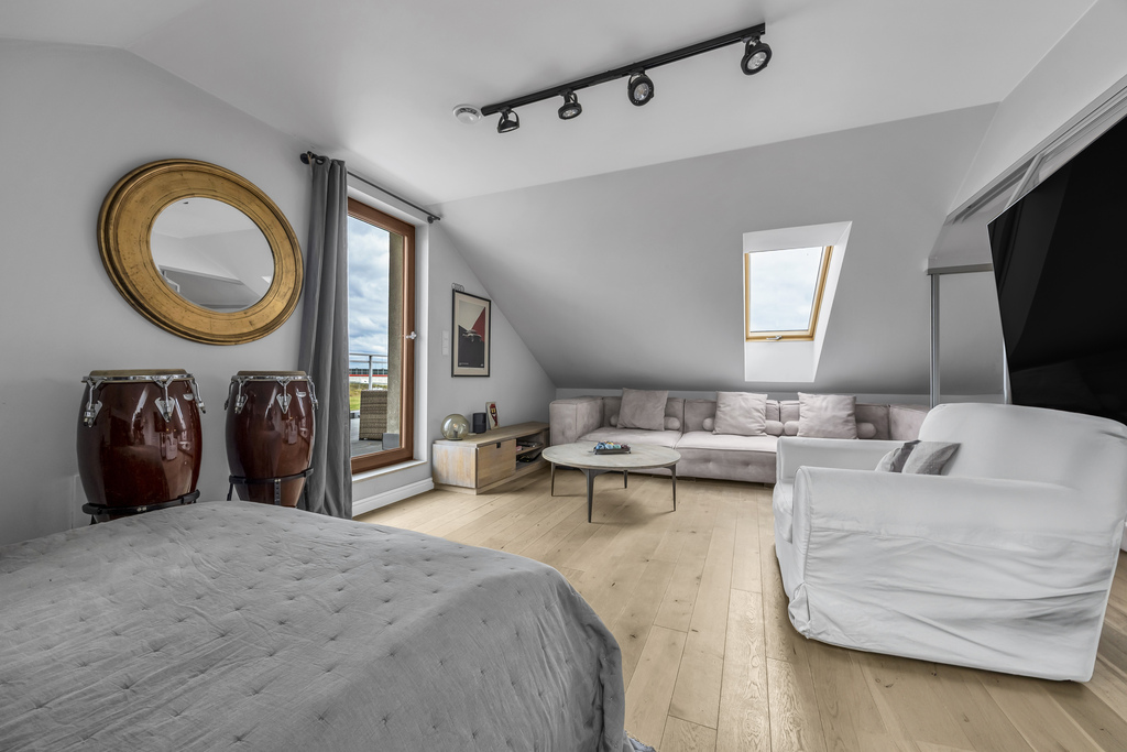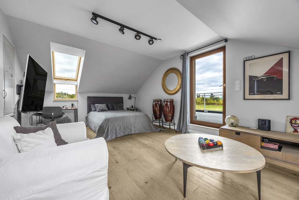 - Open-space area used as a bedroom and home office (approx. 30 m²)