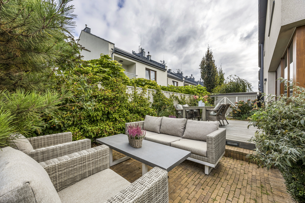 Klimatyczny i energooszczędny dom w zabudowie szeregowej, 159 m2, 4 sypialnie, gustowne wykończenie, osiedle zamknięte, ul. Marcepanowa, Wilanów.