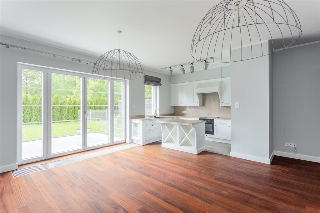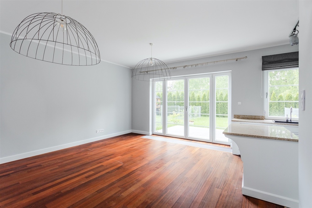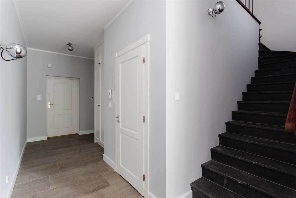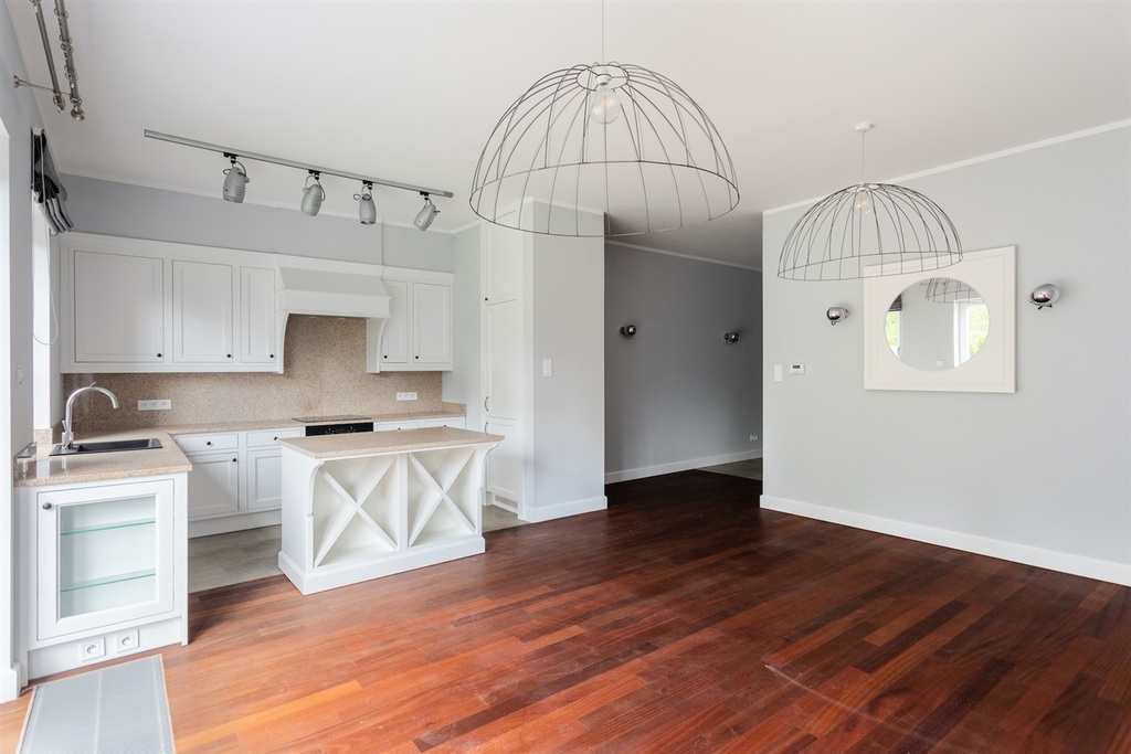 Nieruchomość wykończona z dbałością o najmniejszy szczegół. Na podłodze drewniana podłoga, solidne granitowe schody. Kuchnia w zabudowie z ruchomą wyspą (możliwość dowolnego powiększania/zmniejszania kuchni) wyposażona w sprzęt marki Bosch. Domofon, alarm.