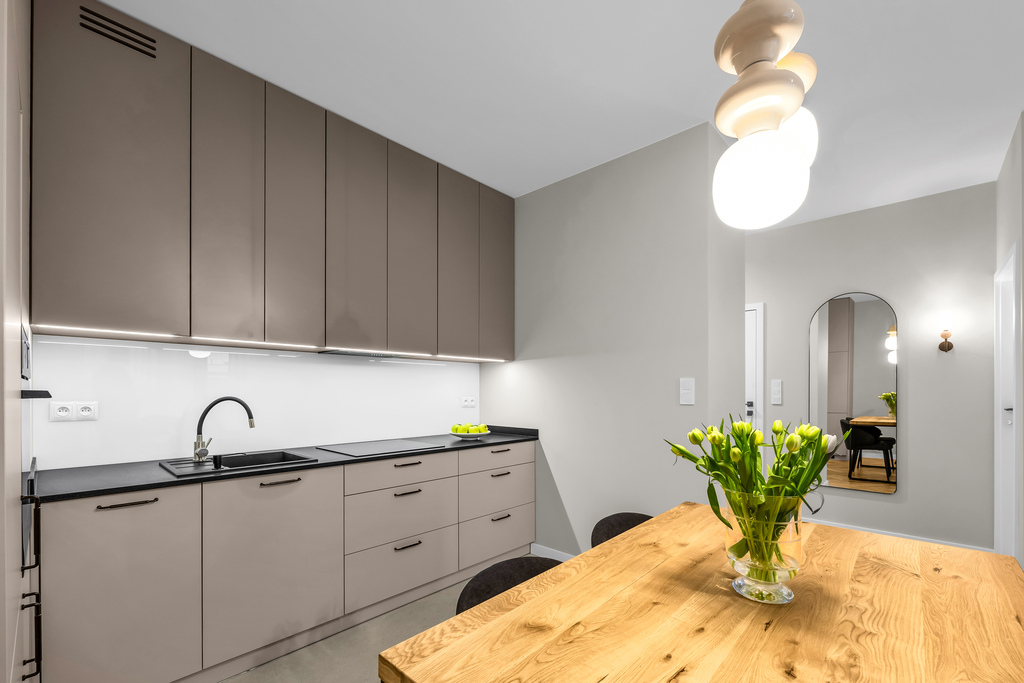 - nowoczesne zabudowy i meble wykonano na wymiar