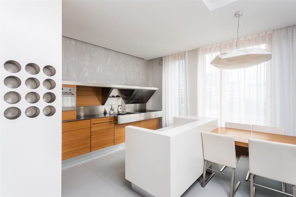 The unusual shape of the building, the internal patio filled with greenery and gardens on the roofs emphasise the high quality of the project, which stands out among other apartment buildings in Warsaw. Trio Apartments Warsaw is a proposal for all enthusiasts of modern design and sophisticated design, who are looking for an exclusive flat in the centre of Warsaw.