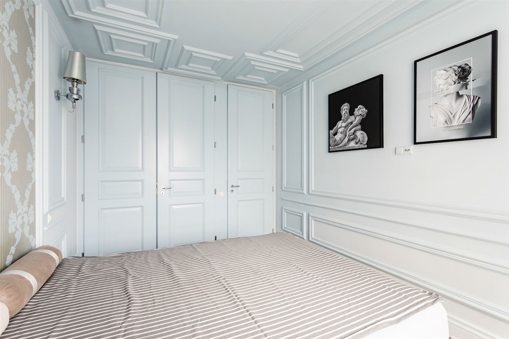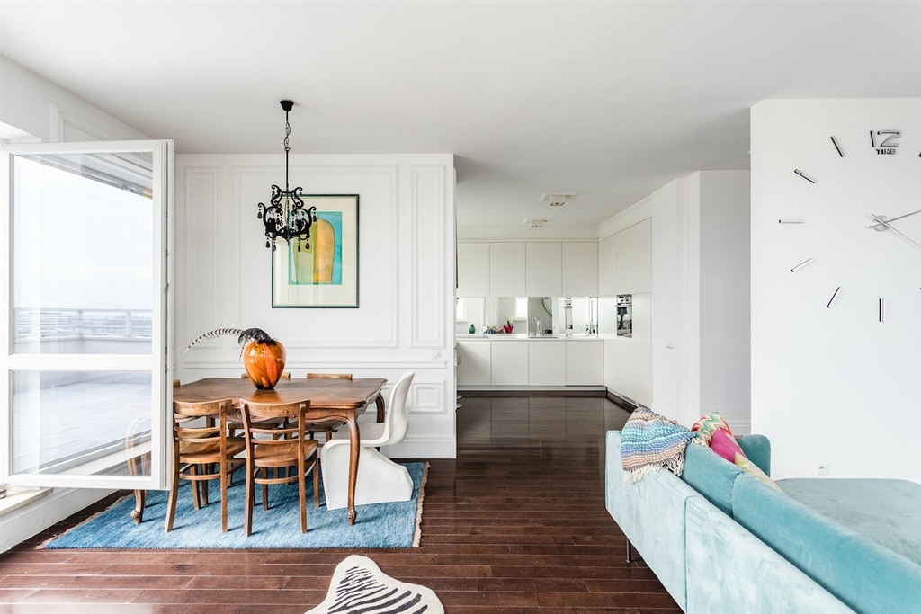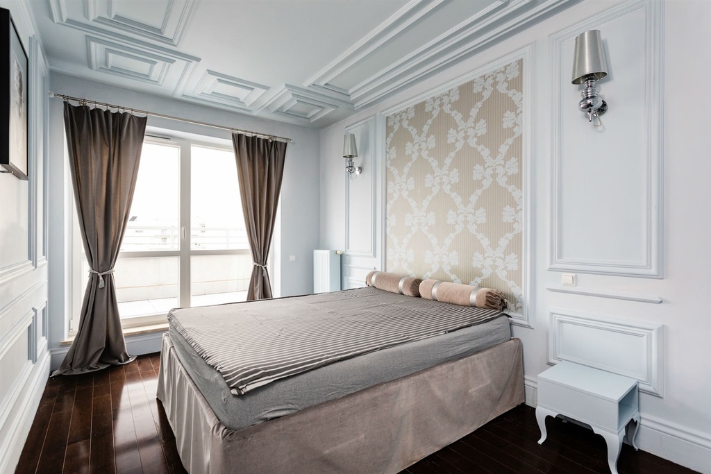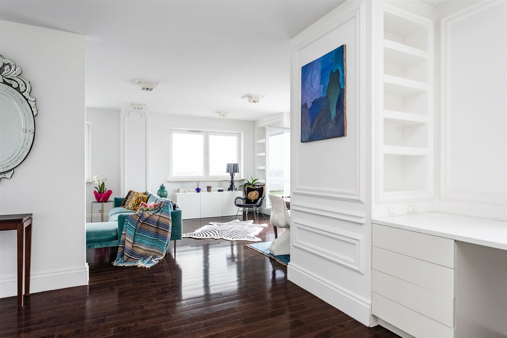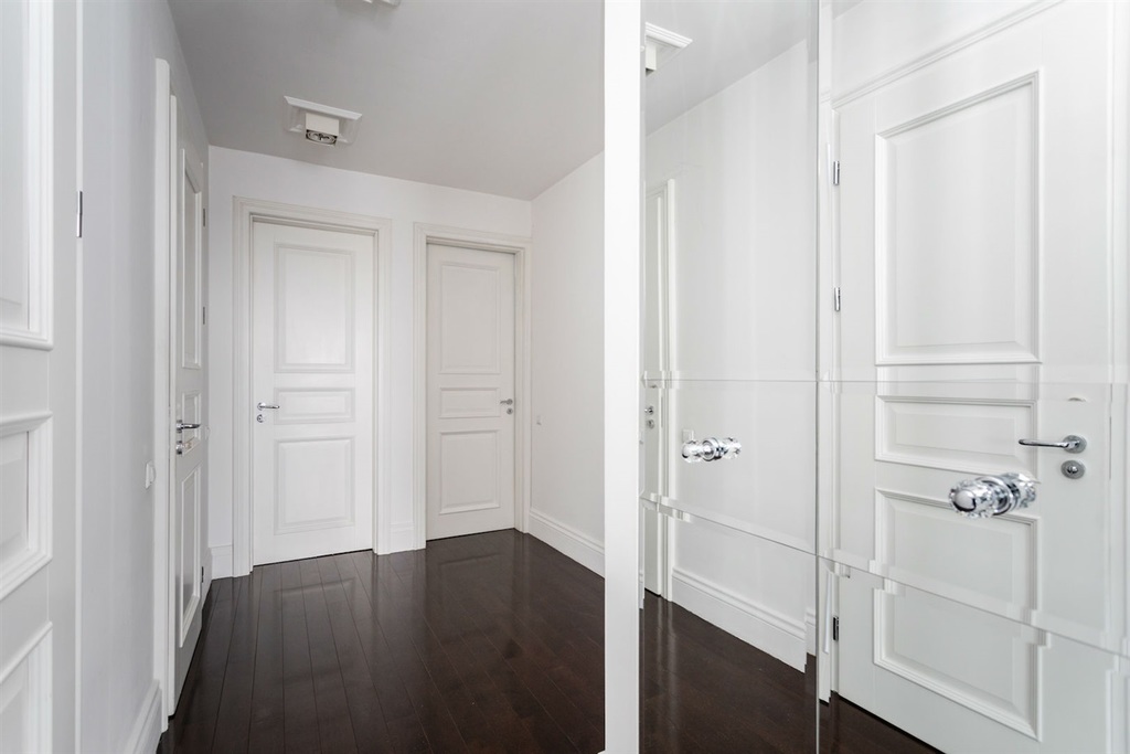 Apartament został wykończony w bardzo wysokim standardzie. Zadbano tu o każdy detal w tym piękną sztukaterię na ścianach i sufitach, stylową mozaikę w łazience i toalecie czy też piękną, drewnianą podłogę z klonu kanadyjskiego. Wysokość pomieszczeń daje poczucie przestrzeni i podkreśla niepowtarzalny klimat miejsca.