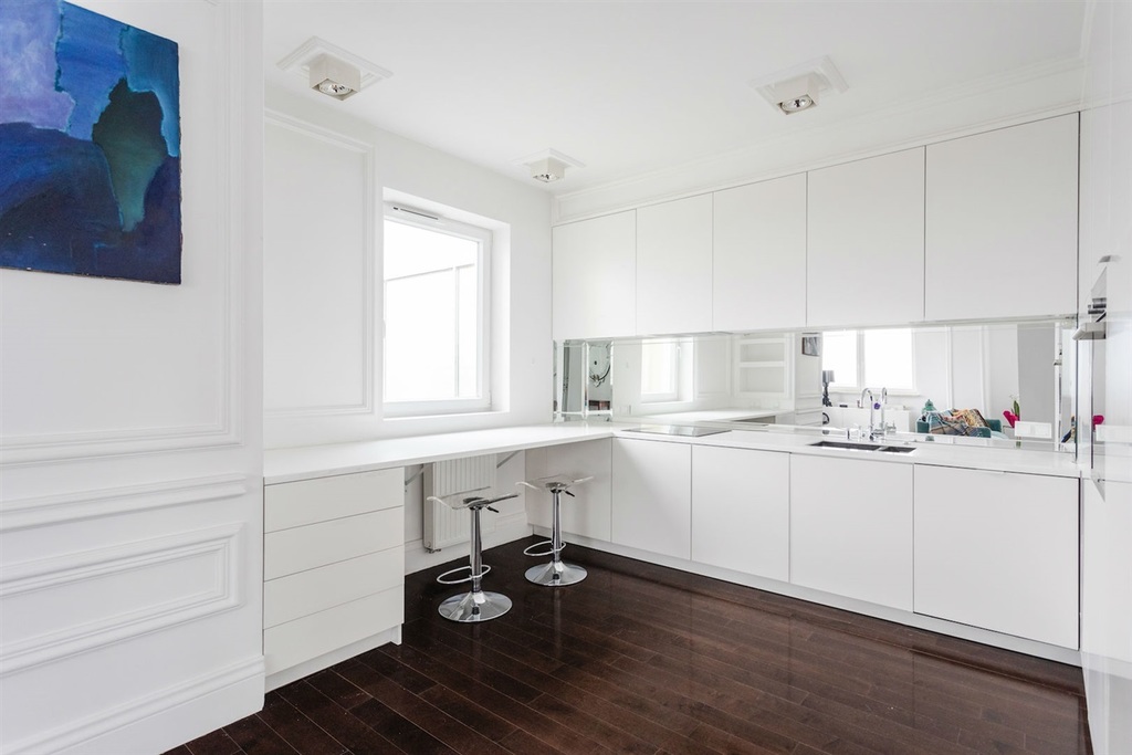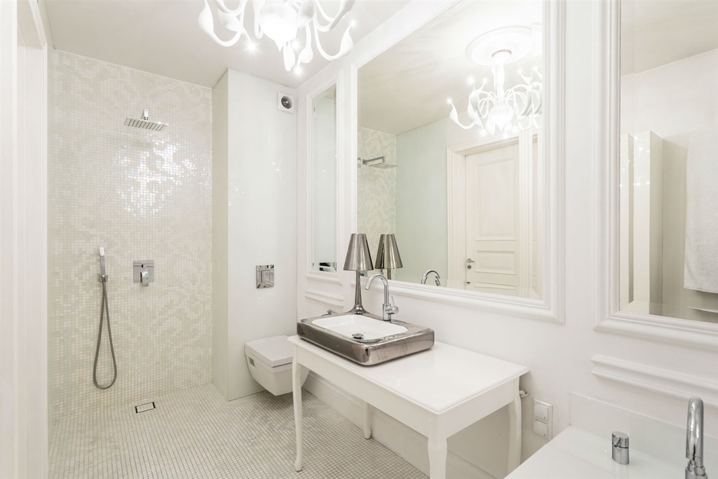 W apartamencie znajduje się także wysokiej klasy armatura łazienkowa, która świetnie koresponduje z wyjątkowym designem, zaś w kuchni zastosowano sprzęt wysokiej klasy. W nieruchomosci znajduje się wiele luster, które optycznie powiększają przestrzeń, ocieplające wnętrze światło czy też zabudowa wykonana na specjalne zamówienie. W salonie klimatyzacja.
