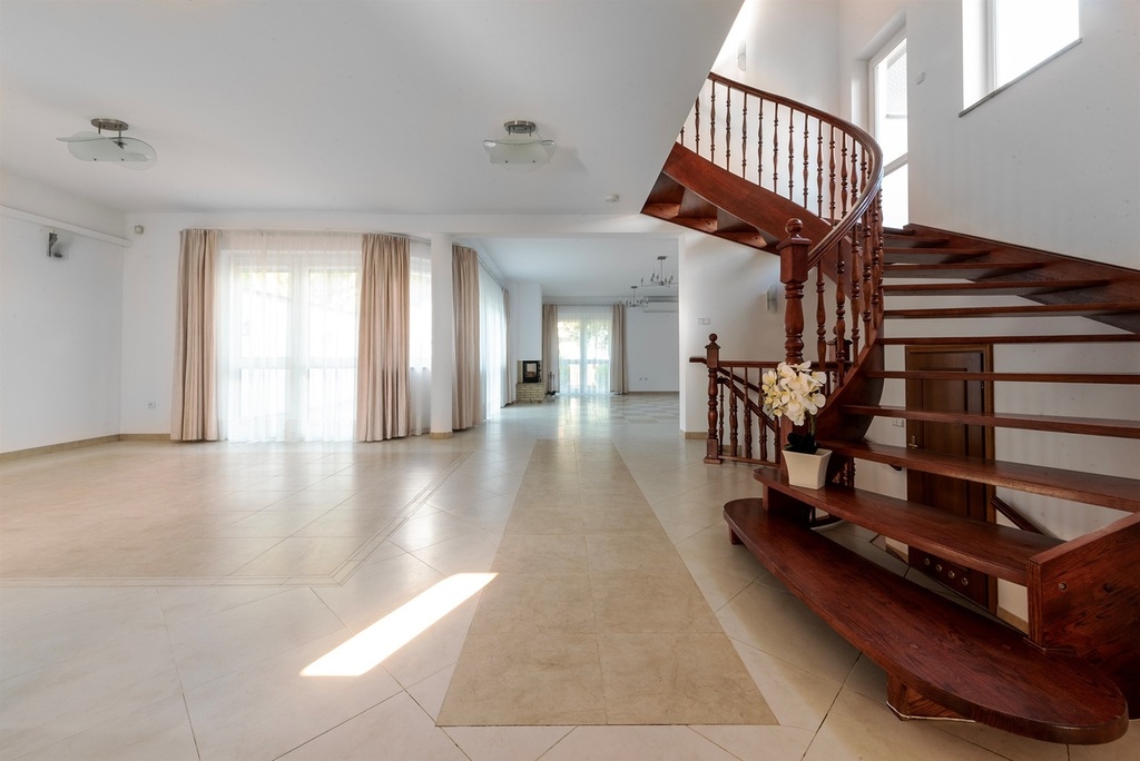 Prestiżowe sąsiedztwo - najbliższe otoczenie stanowią jedno i wielorodzinne wille oraz kilka ambasad. W odległości 5 minut samochodem znajduje się centrum handlowe Sadyba Best Mall, a około pół godziny komunikacją miejską zajmuje dojazd do centrum Warszawy. W bliskim sąsiedztwie siłownia oraz pole golfowe. Niewątpliwą zaletą tej nieruchomości jest poczucie ciszy i spokoju mimo bliskiej odległości od centrum miasta.